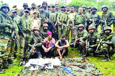 ਜੰਮੂ : ਪੁਣਛ ਜ਼ਿਲ੍ਹੇ ਵਿਚ ਕੰਟਰੋਲ ਰੇਖਾ ਦੇ ਨਾਲ ਲੱਗਦੀ ਸਰਹੱਦੀ ਵਾੜ ਦੇ ਨੇੜੇ ਹਥਿਆਰਾਂ ਅਤੇ ਨਸ਼ੀਲੇ ਪਦਾਰਥਾਂ ਦੀ ਤਸਕਰੀ ਦੀ ਵੱਡੀ ਕੋਸ਼ਿਸ਼ ਨੂੰ ਨਾਕਾਮ ਕਰਦਿਆਂ ਤਿੰਨ ਵਿਅਕਤੀਆਂ ਨੂੰ ਗਿ੍ਫਤਾਰ ਕਰ ਲਿਆ ਗਿਆ | ਕਰਮਾਰਾ ਪਿੰਡ ‘ਚ ਬੁੱਧਵਾਰ ਤੜਕੇ ਹੋਈ ਗੋਲੀਬਾਰੀ ‘ਚ ਫੌਜ ਦਾ ਇਕ ਜਵਾਨ ਅਤੇ ਗਿ੍ਫਤਾਰ ਮੁਲਜ਼ਮਾਂ ‘ਚੋਂ ਇਕ ਜ਼ਖਮੀ ਹੋ ਗਿਆ | ਜਵਾਨਾਂ ਨੇ ਸ਼ੱਕੀ ਹਰਕਤ ਦਾ ਪਤਾ ਲੱਗਣ ‘ਤੇ ਲੋਕਾਂ ਨੂੰ ਰੋਕਣ ਦੀ ਕੋਸ਼ਿਸ਼ ਕੀਤੀ, ਜਿਸ ਤੋਂ ਬਾਅਦ ਗੋਲੀਬਾਰੀ ਸ਼ੁਰੂ ਹੋ ਗਈ | ਫੜੇ ਮੁਲਜ਼ਮਾਂ ਦੀ ਪਛਾਣ ਮੁਹੰਮਦ ਫਾਰੂਕ (26), ਮੁਹੰਮਦ ਰਿਆਜ਼ (23) ਅਤੇ ਮੁਹੰਮਦ ਜ਼ੁਬੈਰ (22) ਪਿੰਡ ਕਰਮਾਰਾ ਵਜੋਂ ਹੋਈ ਹੈ | ਮੁਹੰਮਦ ਫਾਰੂਕ ਦੇ ਪੈਰ ‘ਚ ਗੋਲੀ ਲੱਗੀ ਹੈ | ਫੜੇ ਵਿਅਕਤੀਆਂ ਕੋਲੋਂ ਇੱਕ ਏ ਕੇ ਰਾਈਫਲ, ਦੋ ਪਿਸਤੌਲ, ਛੇ ਗ੍ਰਨੇਡ, ਪ੍ਰੈਸ਼ਰ ਕੁਕਰ ਵਿੱਚ ਰੱਖੀ ਆਈ ਈ ਡੀ (ਇੰਪ੍ਰੋਵਾਈਜ਼ਡ ਐਕਸਪਲੋਸਿਵ ਡਿਵਾਈਸ) ਅਤੇ ਹੈਰੋਇਨ ਦੇ 20 ਪੈਕਟ ਬਰਾਮਦ ਕੀਤੇ ਗਏ ਹਨ |