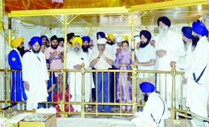ਅੰਮਿ੍ਰਤਸਰ : ਥਲ ਸੈਨਾ ਮੁਖੀ ਜਨਰਲ ਮਨੋਜ ਪਾਂਡੇ ਨੇ ਐਤਵਾਰ ਸ੍ਰੀ ਹਰਿਮੰਦਰ ਸਾਹਿਬ ਵਿਖੇ ਨਤਮਸਤਕ ਹੋ ਕੇ ਸ਼ਰਧਾ ਦਾ ਪ੍ਰਗਟਾਵਾ ਕੀਤਾ। ਉਨ੍ਹਾ ਨਾਲ ਧਰਮ ਪਤਨੀ ਅਰਚਨਾ ਪਾਂਡੇ ਅਤੇ ਬਿ੍ਰਗੇਡੀਅਰ ਸੀ ਬੀ ਕੇ ਬੈਨਰਜੀ ਸਨ। ਉਨ੍ਹਾਂ ਕੁਝ ਸਮੇਂ ਲਈ ਗੁਰਬਾਣੀ ਕੀਰਤਨ ਸਰਵਣ ਕੀਤਾ ਅਤੇ ਸ੍ਰੀ ਅਕਾਲ ਤਖ਼ਤ ਵਿਖੇ ਜਾ ਕੇ ਵੀ ਸ਼ਰਧਾ ਪ੍ਰਗਟਾਈ। ਇਸ ਮੌਕੇ ਸ਼੍ਰੋਮਣੀ ਕਮੇਟੀ ਦੇ ਮੈਂਬਰ ਐਡਵੋਕੇਟ ਭਗਵੰਤ ਸਿੰਘ ਸਿਆਲਕਾ ਨੇ ਜਨਰਲ ਪਾਂਡੇ ਦਾ ਧਿਆਨ ਕੁਝ ਸਿੱਖ ਮਸਲਿਆਂ ਵੱਲ ਵੀ ਦਿਵਾਇਆ।