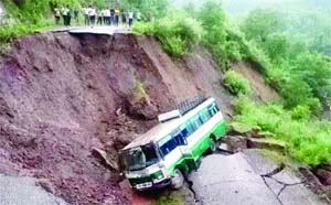 ਮੰਡੀ : ਹਿਮਾਚਲ ਪ੍ਰਦੇਸ਼ ਦੇ ਮੰਡੀ ਜ਼ਿਲ੍ਹੇ ’ਚ ਸ਼ਨੀਵਾਰ ਸਵੇਰੇ ਹੋਏ ਇੱਕ ਬੱਸ ਹਾਦਸੇ ’ਚ ਕਈ ਲੋਕ ਜ਼ਖ਼ਮੀ ਹੋ ਗਏ, ਜਿਨ੍ਹਾਂ ’ਚੋਂ ਚਾਰ ਦੀ ਹਾਲਤ ਗੰਭੀਰ ਦੱਸੀ ਜਾ ਰਹੀ ਹੈ। ਹਾਦਸਾ ਮੰਡੀ ਜ਼ਿਲ੍ਹੇ ’ਚ ਹੋਇਆ, ਜਿੱਥੇ ਹਿਮਾਚਲ ਰੋਡ ਟਰਾਂਸਪੋਰਟ ਕਾਰਪੋਰੇਸ਼ਨ ਦੀ ਇੱਕ ਬੱਸ ਹਾਦਸੇ ਦਾ ਸ਼ਿਕਾਰ ਹੋ ਗਈ। ਇਹ ਬੱਸ ਮੰਡੀ ਜ਼ਿਲ੍ਹੇ ਦੇ ਸੁੰਦਰ ਨਗਰ ਤੋਂ ਸ਼ਿਮਲਾ ਜਾ ਰਹੀ ਸੀ। ਬੱਸ ’ਚ ਕਈ ਯਾਤਰੀ ਸਵਾਰ ਸਨ। ਇਸ ਦੌਰਾਨ ਕਾਂਗੂ ਦੇ ਕੋਲ ਸੜਕ ਧੱਸ ਗਈ, ਸੜਕ ਦੇ ਧਸਣ ਕਾਰਨ ਬੱਸ ਇਸ ’ਚ ਡਿੱਗ ਗਈ। ਹਿਮਾਚਲ ਪ੍ਰਦੇਸ਼ ’ਚ ਪਿਛਲੇ ਮਹੀਨੇ ਹੋਈ ਭਾਰੀ ਬਾਰਿਸ਼ ਤੋਂ ਬਾਅਦ ਸੈਂਕੜੇ ਸੜਕਾਂ ਟੁੱਟ ਗਈਆਂ ਅਤੇ ਦਰਜਨਾਂ ਪੁਲ ਰੁੜ੍ਹ ਗਏ ਹਨ। ਇਸ ਦੌਰਾਨ ਮੰਡੀ-ਮਨਾਲੀ ਨੈਸ਼ਨਲ ਹਾਈਵੇ ’ਤੇ ਅਲਟੋ ਕਾਰ ਉਪਰ ਪੱਥਰ ਡਿੱਗਣ ਕਾਰਨ 6 ਸਾਲਾ ਬੱਚੇ ਦੀ ਮੌਤ ਹੋ ਗਈ ਅਤੇ ਪਰਵਾਰ ਦੇ ਹੋਰ ਲੋਕ ਜ਼ਖ਼ਮੀ ਹੋ ਗਏ।