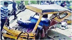 ਜੈਪੁਰ : ਰਾਜਸਥਾਨ ਦੇ ਦੌਸਾ ਜ਼ਿਲ੍ਹੇ ਦੀ ਹਿੰਡੌਨ ਰੋਡ ’ਤੇ ਇੱਕ ਬੱਸ ਨੇ ਆਟੋ ਰਿਕਸ਼ਾ ਨੂੰ ਟੱਕਰ ਮਾਰ ਦਿੱਤੀ। ਹਾਦਸੇ ’ਚ 5 ਲੋਕਾਂ ਦੀ ਮੌਤ ਹੋ ਗਈ, ਜਦਕਿ ਛੇ ਲੋਕ ਗੰਭੀਰ ਜ਼ਖ਼ਮੀ ਹੋ ਗਏ, ਜਿਨ੍ਹਾਂ ਨੂੰ ਇਲਾਜ ਲਈ ਮਹੂਆ ਦੇ ਸਰਕਾਰੀ ਹਸਪਤਾਲ ’ਚ ਭਰਤੀ ਕਰਾਇਆ ਗਿਆ। ਇਨ੍ਹਾਂ ’ਚੋਂ ਮਹਿਲਾ ਅਤੇ ਪੁਰਸ਼ ਦੋਵੇਂ ਹੀ ਸ਼ਾਮਲ ਹਨ। ਹਾਦਸਾ ਓਵਰਟੇਕ ਕਰਨ ਦੀ ਕੋਸ਼ਿਸ਼ ’ਚ ਹੋਣਾ ਦੱਸਿਆ ਜਾ ਰਿਹਾ ਹੈ। ਮਹੂਆ ਥਾਣਾ ਅਧਿਕਾਰੀ ਜਤਿੰਦਰ ਨੇ ਦੱਸਿਆ ਕਿ ਬੱਸ ਮਹੂਆ ਤੋਂ ਹਿੰਡੌਨ ਜਾ ਰਹੀ ਸੀ। ਉਥੇ ਹੀ ਟੈਂਪੂ ਸਾਈਡ ਤੋਂ ਨਿਕਲ ਰਿਹਾ ਸੀ। ਟੈਂਪੂ ਤੋਂ ਅੱਗੇ ਨਿਕਲਣ ਦੇ ਚੱਕਰ ਨੇ ਬੱਸ ਨੇ ਟੱਕਰ ਮਾਰ ਦਿੱਤੀ। ਬੱਸ ਦੇ ਥੱਲੇ ਆਉਣ ਕਾਰਨ 5 ਯਾਤਰੀਆਂ ਦੀ ਮੌਤ ਹੋ ਗਈ, ਜਦਕਿ ਟੈਂਪੂ ’ਚ ਸਵਾਰ 6 ਯਾਤਰੀ ਜ਼ਖ਼ਮੀ ਹੋ ਗਏ। ਜ਼ਖ਼ਮੀਆਂ ’ਚ ਇੱਕ ਦੀ ਹਾਲਾਤ ਗੰਭੀਰ ਹੋਣ ਕਾਰਨ ਉਸ ਨੂੰ ਜੈਪੁਰ ਰੈਫਰ ਕਰ ਦਿੱਤਾ ਗਿਆ। ਟੈਂਪੂ ’ਚ ਸਵਾਰ ਲੋਕ ਇੱਕ ਹੀ ਪਰਵਾਰ ਦੇ ਸਨ, ਉਹ ਕੈਲਾ ਦੇਵੀ ਦੇ ਦਰਸ਼ਨ ਕਰਕੇ ਵਾਪਸ ਆ ਰਹੇ ਸਨ।