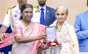 ਰਾਸ਼ਟਰਪਤੀ ਦਰੋਪਦੀ ਮੁਰਮੂ ਨੇ ਵਿਗਿਆਨ ਭਵਨ ’ਚ 69ਵੇਂ ਰਾਸ਼ਟਰੀ ਫਿਲਮ ਪੁਰਸਕਾਰ ਸਮਾਰੋਹ ਦੌਰਾਨ ਵਹੀਦਾ ਰਹਿਮਾਨ (85) ਨੂੰ ਇਹ ਪੁਰਸਕਾਰ ਪ੍ਰਦਾਨ ਕੀਤਾ।