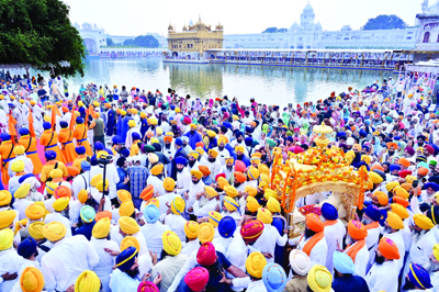 ਅੰਮਿ੍ਤਸਰ (ਜਸਬੀਰ ਸਿੰਘ ਪੱਟੀ)-ਸ਼੍ਰੋਮਣੀ ਗੁਰਦੁਆਰਾ ਪ੍ਰਬੰਧਕ ਕਮੇਟੀ ਵੱਲੋਂ ਚੌਥੇ ਪਾਤਸ਼ਾਹ ਸ੍ਰੀ ਗੁਰੂ ਰਾਮਦਾਸ ਜੀ ਦੇ ਪ੍ਰਕਾਸ਼ ਪੁਰਬ ਸੰਬੰਧੀ ਸਭਾ-ਸੁਸਾਇਟੀਆਂ ਅਤੇ ਸੰਗਤਾਂ ਦੇ ਸਹਿਯੋਗ ਨਾਲ ਸ੍ਰੀ ਅਕਾਲ ਤਖ਼ਤ ਸਾਹਿਬ ਤੋਂ ਨਗਾਰਿਆਂ, ਜੈਕਾਰਿਆਂ ਅਤੇ ਨਰਸਿੰਙਿਆਂ ਦੀ ਗੂੰਜ ‘ਚ ਵਿਸ਼ਾਲ ਨਗਰ ਕੀਰਤਨ ਸਜਾਇਆ ਗਿਆ | ਅਰਦਾਸ ਉਪਰੰਤ ਸੱਚਖੰਡ ਸ੍ਰੀ ਹਰਿਮੰਦਰ ਸਾਹਿਬ ਦੇ ਮੁੱਖ ਗ੍ਰੰਥੀ ਅਤੇ ਸ੍ਰੀ ਅਕਾਲ ਤਖ਼ਤ ਸਾਹਿਬ ਦੇ ਜਥੇਦਾਰ ਗਿਆਨੀ ਰਘਬੀਰ ਸਿੰਘ ਨੇ ਸ੍ਰੀ ਗੁਰੂ ਗ੍ਰੰਥ ਸਾਹਿਬ ਦਾ ਪਾਵਨ ਸਰੂਪ ਸੁਨਹਿਰੀ ਪਾਲਕੀ ‘ਚ ਸੁਸ਼ੋਭਿਤ ਕੀਤਾ | ਇਸ ਮੌਕੇ ਹਾਜ਼ਰ ਵੱਡੀ ਗਿਣਤੀ ਵਿਚ ਸੰਗਤਾਂ ਨੇ ਫੁੱਲਾਂ ਦੀ ਵਰਖਾ ਕਰਕੇ ਸ਼ਰਧਾ ਦਾ ਪ੍ਰਗਟਾਵਾ ਕੀਤਾ | ਇਸ ਮੌਕੇ ਹੈਲੀਕਾਪਟਰ ਰਾਹੀਂ ਸੱਚਖੰਡ ਸ੍ਰੀ ਹਰਿਮੰਦਰ ਸਾਹਿਬ ਅਤੇ ਨਗਰ ਕੀਰਤਨ ‘ਤੇ ਗੁਲਾਬ ਦੇ ਫੁੱਲਾਂ ਦੀ ਵਰਖਾ ਵੀ ਕੀਤੀ ਗਈ |