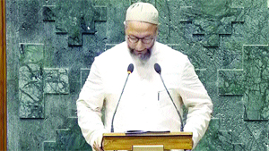 ਨਵੀਂ ਦਿੱਲੀ : ਹੈਦਰਾਬਾਦ ਦੇ ਸਾਂਸਦ ਅਸਦੁਦੀਨ ਓਵੈਸੀ ਨੇ ਮੰਗਲਵਾਰ ਲੋਕ ਸਭਾ ਮੈਂਬਰ ਵਜੋਂ ਸਹੁੰ ਚੁੱਕਣ ਤੋਂ ਬਾਅਦ ਜੈ ਭੀਮ, ਜੈ ਤੇਲੰਗਾਨਾ ਅਤੇ ਜੈ ਫਲਸਤੀਨ ਦੇ ਨਾਅਰੇ ਲਾਏ। ਓਵੈਸੀ ਨੇ ਉਰਦੂ ’ਚ ਸਹੁੰ ਚੁੱਕੀ। ਆਲ ਇੰਡੀਆ ਮਜਲਿਸ-ਏ-ਇਤੇਹਾਦੁਲ ਮੁਸਲਿਮੀਨ ਦੇ ਪ੍ਰਧਾਨ ਓਵੈਸੀ ਨੇ ਤੇਲੰਗਾਨਾ ਦੀ ਹੈਦਰਾਬਾਦ ਲੋਕ ਸਭਾ ਸੀਟ ਤੋਂ ਭਾਜਪਾ ਉਮੀਦਵਾਰ ਮਾਧਵੀ ਲਤਾ ਨੂੰ 338087 ਵੋਟਾਂ ਨਾਲ ਹਰਾਇਆ ਹੈ।