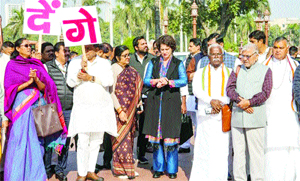 ਕਾਂਗਰਸ ਦੀ ਜਨਰਲ ਸਕੱਤਰ ਪਿ੍ਰਅੰਕਾ ਗਾਂਧੀ ਵਾਡਰਾ ਸਣੇ ਕਾਂਗਰਸ, ਡੀ ਐੱਮ ਕੇ ਅਤੇ ਖੱਬੀਆਂ ਪਾਰਟੀਆਂ ਦੇ ਸੰਸਦ ਮੈਂਬਰਾਂ ਸਮੇਤ ਹੋਰਨਾਂ ਨੇ ਸੰਸਦ ਭਵਨ ਦੇ ਮਕਰ ਦੁਆਰ ਦੀਆਂ ਪੌੜੀਆਂ ਤੇ ਸੰਵਿਧਾਨ ਸਦਨ ਦੇ ਸਾਹਮਣੇ ਖੜ੍ਹ ਕੇ ਪ੍ਰਦਰਸ਼ਨ ਕਰਦਿਆਂ ਮੋਦੀ ਅਤੇ ਅਡਾਨੀ ਦੀ ਮਿਲੀਭੁਗਤ ਵਿਰੁੱਧ ਨਾਅਰੇਬਾਜ਼ੀ ਕੀਤੀ ਅਤੇ ਮਾਮਲੇ ਦੀ ਸਾਂਝੀ ਸੰਸਦੀ ਕਮੇਟੀ ਤੋਂ ਜਾਂਚ ਦੀ ਮੰਗ ਕੀਤੀ।