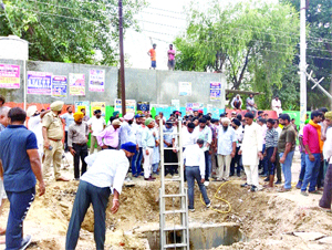 ਬਲਾਚੌਰ (ਜਤਿੰਦਰ ਪਾਲ ਸਿੰਘ ਕਲੇਰ)-ਸੋਮਵਾਰ ਸਰਕਾਰੀ ਪ੍ਰਾਈਮਰੀ ਸਕੂਲ ਮਹਿੰਦੀਪੁਰ ਦੇ ਬਾਹਰ ਸੀਵਰੇਜ ਦੀ ਸਫਾਈ ਕਰਦਿਆਂ ਇਕ ਮਜ਼ਦੂਰ ਗਟਰ ਵਿਚ ਡਿੱਗ ਗਿਆ। ਉਸਨੂੰ ਬਚਾਉਣ ਦੀ ਕੋਸ਼ਿਸ਼ ਵਿਚ ਦੂਜਾ ਵੀ ਡਿੱਗ ਗਿਆ। ਐੱਸ ਡੀ ਐੱਮ ਸੂਬਾ ਸਿੰਘ, ਡੀ ਐੱਸ ਪੀ ਦਵਿੰਦਰ ਸਿੰਘ, ਐੱਸ ਐੱਚ ਓ ਸੁਖਪਾਲ ਸਿੰਘ, ਐੱਸ ਐੱਮ ਓ ਕੁਲਵਿੰਦਰ ਮਾਨ ਤੇ ਹੋਰਨਾਂ ਅਫਸਰਾਂ ਦੀ ਦੇਖਰੇਖ ਵਿਚ ਦੋਹਾਂ ਨੂੰ ਕਾਫੀ ਜੱਦੋਜਹਿਦ ਤੋਂ ਬਾਅਦ ਕੱਢਿਆ ਜਾ ਸਕਿਆ। ਜ਼ਹਿਰੀਲੀ ਗੈਸ ਦਾ ਸ਼ਿਕਾਰ ਹੋਏ ਮਜ਼ਦੂਰਾਂ ਨੂੰ ਸਿਵਲ ਹਸਪਤਾਲ ਲਿਜਾਇਆ ਗਿਆ, ਜਿੱਥੇ ਦੋਹਾਂ ਨੇ ਦਮ ਤੋੜ ਦਿੱਤਾ। ਗੇਜਾ ਸਿੰਘ ਵਾਈਸ ਚੇਅਰਮੈਨ ਨੇ ਸਰਕਾਰ ’ਤੇ ਦੋਸ਼ ਲਾਇਆ ਕਿ ਸਰਕਾਰ ਵੱਲੋਂ ਸੁਰੱਖਿਆ ਕਿੱਟਾਂ ਮੁਹੱਈਆ ਨਾ ਕਰਾਉਣ ਕਾਰਨ ਦੋਹਾਂ ਮਜ਼ਦੂਰਾਂ ਦੀ ਜਾਨ ਗਈ।