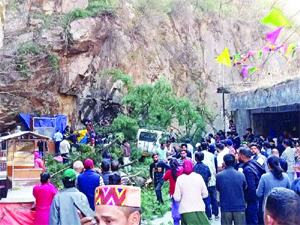 ਕੁੱਲੂ : ਐਤਵਾਰ ਸ਼ਾਮੀਂ ਕਰੀਬ ਪੰਜ ਵਜੇ ਮਣੀਕਰਨ ’ਚ ਗੁਰਦੁਆਰੇ ਕੋਲ ਹਨ੍ਹੇਰੀ ਨਾਲ ਉਖੜਿਆ ਵੱਡਾ ਦਰਖਤ ਕਾਰਾਂ ਤੇ ਫੂਡ ਸਟਾਲਾਂ ’ਤੇ ਡਿੱਗਣ ਨਾਲ 3 ਮਹਿਲਾਵਾਂ ਸਣੇ 6 ਵਿਅਕਤੀਆਂ ਦੀ ਮੌਤ ਹੋ ਗਈ। ਕਈ ਲੋਕ ਜ਼ਖਮੀ ਵੀ ਹੋਏ ਹਨ। ਮਿ੍ਰਤਕਾਂ ਵਿੱਚ ਦੋ ਵੈਂਡਰ, ਇੱਕ ਕਾਰ ਡਰਾਈਵਰ ਤੇ ਤਿੰਨ ਸੈਲਾਨੀ ਸ਼ਾਮਲ ਦੱਸੇ ਗਏ ਹਨ। ਦਰੱਖਤ ਉਖੜਨ ਕਾਰਨ ਪਹਾੜ ਤੋਂ ਢਿੱਗਾਂ ਵੀ ਡਿੱਗੀਆਂ।