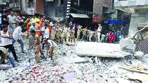 ਨਵੀਂ ਦਿੱਲੀ : ਮੁਸਤਫਾਬਾਦ ਖੇਤਰ ਵਿੱਚ ਸਨਿੱਚਰਵਾਰ ਤੜਕਸਾਰ ਚਾਰ ਮੰਜ਼ਲਾ ਇਮਾਰਤ ਡਿੱਗਣ ਨਾਲ 11 ਲੋਕਾਂ ਦੀ ਮੌਤ ਹੋ ਗਈ, ਜਦਕਿ 11 ਲੋਕਾਂ ਨੂੰ ਬਚਾ ਲਿਆ ਗਿਆ ਹੈ। ਮਰਨ ਵਾਲਿਆਂ ਵਿੱਚ ਇਮਾਰਤ ਦਾ ਮਾਲਕ 60 ਸਾਲਾ ਤਹਿਸੀਨ ਵੀ ਹੈ। ਇੱਕ ਪਰਵਾਰ ਦੇ 8 ਜੀਅ ਮਾਰੇ ਗਏ ਹਨ। ਮਰਨ ਵਾਲਿਆਂ ’ਚ ਤਿੰਨ ਔਰਤਾਂ ਤੇ ਚਾਰ ਬੱਚੇ ਸ਼ਾਮਲ ਹਨ। ਸੀਵਰੇਜ ਦੇ ਪਾਣੀ ਨਾਲ ਆਏ ਸਲ੍ਹਾਬੇ ਕਾਰਨ ਇਮਾਰਤ ਡਿੱਗੀ।