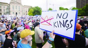 ਨਿਊ ਯਾਰਕ : ਰਾਸ਼ਟਰਪਤੀ ਟਰੰਪ ਵੱਲੋਂ ਆਪਣਾ 79ਵਾਂ ਜਨਮ ਦਿਨ ਵਾਸ਼ਿੰਗਟਨ ’ਚ ਗਰੈਂਡ ਮਿਲਟਰੀ ਪਰੇਡ ਨਾਲ ਮਨਾਇਆ, ਜਦਕਿ ਉਸ ਦੀ ਤਾਨਾਸ਼ਾਹੀ ਖਿਲਾਫ ਅਤੇ ਜਮਹੂਰੀਅਤ ਤੇ ਪ੍ਰਵਾਸੀ ਹੱਕਾਂ ਲਈ ਅਮਰੀਕਾ-ਭਰ ’ਚ ਲੋਕਾਂ ਨੇ ‘ਨੋ ਕਿੰਗਜ਼’ ਦੇ ਨਾਅਰੇ ਹੇਠ ਮੁਜ਼ਾਹਰੇ ਕੀਤੇ। ਨੋ ਕਿੰਗਜ਼ ਦੇ ਜਥੇਬੰਦਕਾਂ ਮੁਤਾਬਕ ਲੱਖਾਂ ਲੋਕ ਸੜਕਾਂ ’ਤੇ ਉਤਰੇ।