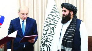 ਮਾਸਕੋ : ਰੂਸ ਅਫਗਾਨਿਸਤਾਨ ਦੀ ਤਾਲਿਬਾਨ ਸਰਕਾਰ ਨੂੰ ਮਾਨਤਾ ਦੇਣ ਵਾਲਾ ਦੁਨੀਆ ਦਾ ਪਹਿਲਾ ਮੁਲਕ ਬਣ ਗਿਆ ਜਦੋਂ ਉਸਨੇ ਤਾਲਿਬਾਨ ਦੇ ਨਵੇਂ ਰਾਜਦੂਤ ਗੁਲ ਹਸਨ ਦੇ ਪ੍ਰਤੀਤੀ ਪੱਤਰ ਪ੍ਰਵਾਨ ਕਰ ਲਏ। ਤਾਲਿਬਾਨ ਨੇ ਚਾਰ ਸਾਲ ਪਹਿਲਾਂ ਅਗਸਤ 2021 ਵਿੱਚ ਅਮਰੀਕਾ ਦੇ ਭੱਜ ਜਾਣ ਤੋਂ ਬਾਅਦ ਸੱਤਾ ਸੰਭਾਲੀ ਸੀ। ਰੂਸੀ ਵਿਦੇਸ਼ ਮੰਤਰਾਲੇ ਨੇ ਵੀਰਵਾਰ ਇੱਕ ਬਿਆਨ ਵਿੱਚ ਕਿਹਾ, ‘‘ਅਸੀਂ ਵਿਸ਼ਵਾਸ ਕਰਦੇ ਹਾਂ ਕਿ ਅਫਗਾਨਿਸਤਾਨ ਦੀ ਇਸਲਾਮੀ ਅਮੀਰਾਤ ਸਰਕਾਰ ਨੂੰ ਸਰਕਾਰੀ ਤੌਰ ’ਤੇ ਮਾਨਤਾ ਦੇਣ ਨਾਲ ਵੱਖ-ਵੱਖ ਖੇਤਰਾਂ ਵਿੱਚ ਦੋਹਾਂ ਮੁਲਕਾਂ ਵਿਚਾਲੇ ਦੁਵੱਲੀ ਮਿਲਵਰਤਨ ਨੂੰ ਬਲ ਮਿਲੇਗਾ।’’