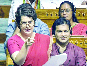 ਪਿ੍ਰਅੰਕਾ ਨੇ ਭਾਜਪਾ ਨੂੰ ਇਤਿਹਾਸ ਦੀ ਬਜਾਏ ਵਰਤਮਾਨ ਦੀ ਜ਼ਿੰਮੇਵਾਰੀ ਲੈਣ ਲਈ ਕਿਹਾ। ਉਨ੍ਹਾ ਕਿਹਾ, ‘ਤੁਸੀਂ ਇਤਿਹਾਸ ਦੀ ਗੱਲ ਕਰਦੇ ਹੋ, ਮੈਂ ਵਰਤਮਾਨ ਦੀ ਗੱਲ ਕਰਨਾ ਚਾਹੁੰਦੀ ਹਾਂ, ਤੁਹਾਨੂੰ ਪਿਛਲੇ 11 ਸਾਲਾਂ ਦੀ ਜ਼ਿੰਮੇਵਾਰੀ ਲੈਣੀ ਚਾਹੀਦੀ ਹੈ।’ ਉਨ੍ਹਾ ਕਿਹਾ ਕਿ ਗ੍ਰਹਿ ਮੰਤਰੀ ਅਮਿਤ ਸ਼ਾਹ ਦੀ ਨੱਕ ਹੇਠ ਮਨੀਪੁਰ ਸੜਿਆ, ਦਿੱਲੀ ਵਿੱਚ ਦੰਗੇ ਹੋਏ, ਪਹਿਲਗਾਮ ਹਮਲਾ ਹੋਇਆ, ਪਰ ਉਹ ਅਜੇ ਵੀ ਉਸੇ ਅਹੁਦੇ ’ਤੇ ਹਨ।’ ਪਿ੍ਰਅੰਕਾ ਗਾਂਧੀ ਨੇ ਪ੍ਰਧਾਨ ਮੰਤਰੀ ਨਰਿੰਦਰ ਮੋਦੀ ’ਤੇ ਹਮਲਾ ਕਰਦਿਆਂ ਕਿਹਾ ਕਿ ਅਗਵਾਈ ਸਿਰਫ ਸਿਹਰਾ ਲੈਣ ਬਾਰੇ ਨਹੀਂ ਹੁੰਦੀ, ਬਲਕਿ ਜ਼ਿੰਮੇਵਾਰੀ ਲੈਣੀ ਵੀ ਜ਼ਰੂਰੀ ਹੈ। ਇਸ ਦੌਰਾਨ ਉਨ੍ਹਾ ਅਮਰੀਕੀ ਰਾਸ਼ਟਰਪਤੀ ਡੋਨਾਲਡ ਟਰੰਪ ਵੱਲੋਂ ਭਾਰਤ-ਪਾਕਿਸਤਾਨ ਜੰਗਬੰਦੀ ਦਾ ਐਲਾਨ ਕਰਨ ’ਤੇ ਪ੍ਰਧਾਨ ਮੰਤਰੀ ਦੀ ਨਿੰਦਾ ਕੀਤੀ। ਉਨ੍ਹਾ ਕਿਹਾ, ‘ਸਾਡੇ ਦੇਸ਼ ਦੇ ਇਤਿਹਾਸ ਵਿੱਚ ਪਹਿਲੀ ਵਾਰ ਜੰਗ ਰੋਕੀ ਗਈ ਹੈ ਅਤੇ ਇਸ ਦਾ ਐਲਾਨ ਸਾਡੀ ਸਰਕਾਰ ਜਾਂ ਫੌਜ ਵੱਲੋਂ ਨਹੀਂ, ਬਲਕਿ ਅਮਰੀਕੀ ਰਾਸ਼ਟਰਪਤੀ ਵੱਲੋਂ ਕੀਤਾ ਗਿਆ ਹੈ। ਇਹ ਸਾਡੇ ਪ੍ਰਧਾਨ ਮੰਤਰੀ ਦੀ ਗੈਰ-ਜ਼ਿੰਮੇਵਾਰੀ ਨੂੰ ਦਰਸਾਉਂਦਾ ਹੈ।’