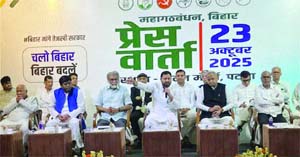 ਪਟਨਾ : ‘ਇੰਡੀਆ’ ਗੱਠਜੋੜ ਨੇ ਵੀਰਵਾਰ ਰਾਸ਼ਟਰੀ ਜਨਤਾ ਦਲ (ਆਰ ਜੇ ਡੀ) ਦੇ ਪ੍ਰਧਾਨ ਅਤੇ ਸਾਬਕਾ ਉਪ ਮੁੱਖ ਮੰਤਰੀ ਤੇਜਸਵੀ ਯਾਦਵ ਨੂੰ ਬਿਹਾਰ ਵਿਧਾਨ ਸਭਾ ਚੋਣਾਂ ਲਈ ਆਪਣਾ ਮੁੱਖ ਮੰਤਰੀ ਅਹੁਦੇ ਦਾ ਉਮੀਦਵਾਰ ਐਲਾਨ ਦਿੱਤਾ ਹੈ | ਸੀਨੀਅਰ ਕਾਂਗਰਸੀ ਆਗੂ ਅਸ਼ੋਕ ਗਹਿਲੋਤ ਨੇ ‘ਇੰਡੀਆ’ ਗਠਜੋੜ ਦੇ ਸਾਰੇ ਸਹਿਯੋਗੀਆਂ ਦੀ ਹਾਜ਼ਰੀ ਵਿੱਚ ਪ੍ਰੈੱਸ ਕਾਨਫਰੰਸ ਦੌਰਾਨ ਇਹ ਐਲਾਨ ਕੀਤਾ | ਗਹਿਲੋਤ ਨੇ ਕਿਹਾ ਕਿ ਇਹ ਫੈਸਲਾ ਉਨ੍ਹਾ ਦੀ ਪਾਰਟੀ ਦੇ ਰਾਸ਼ਟਰੀ ਪ੍ਰਧਾਨ ਮਲਿਕਾਰਜੁਨ ਖੜਗੇ ਅਤੇ ਸੀਨੀਅਰ ਆਗੂ ਰਾਹੁਲ ਗਾਂਧੀ ਦੀ ਸਹਿਮਤੀ ਨਾਲ ਲਿਆ ਗਿਆ ਹੈ | ਗਹਿਲੋਤ ਨੇ ਕਿਹਾ ਕਿ ਜੇਕਰ ‘ਇੰਡੀਆ’ ਗੱਠਜੋੜ ਬਿਹਾਰ ਵਿਚ ਅਗਲੀ ਸਰਕਾਰ ਬਣਾਉਂਦਾ ਹੈ ਤਾਂ ਵਿਕਾਸਸ਼ੀਲ ਇਨਸਾਨ ਪਾਰਟੀ (ਵੀ ਆਈ ਪੀ) ਦੇ ਮੁਖੀ ਮੁਕੇਸ਼ ਸਾਹਨੀ ਉਪ ਮੁੱਖ ਮੰਤਰੀ ਹੋਣਗੇ | ਉਨ੍ਹਾ ਕਿਹਾ ਕਿ ਸਾਹਨੀ ਦੇ ਨਾਲ ਪੱਛੜੇ ਵਰਗ ਦੇ ਇੱਕ ਹੋਰ ਨੇਤਾ ਨੂੰ ਵੀ ਉਪ ਮੁੱਖ ਮੰਤਰੀ ਦਾ ਅਹੁਦਾ ਦਿੱਤਾ ਜਾਵੇਗਾ | ਗਹਿਲੋਤ ਨੇ ਕਿਹਾ ਕਿ ਤੇਜਸਵੀ ਯਾਦਵ ਸਾਡੇ ਨੇਤਾ ਹਨ | ਉਨ੍ਹਾ ਕਿਹਾ ਐੱਨ ਡੀ ਏ ਨੂੰ ਇਹ ਐਲਾਨ ਕਰਨਾ ਚਾਹੀਦਾ ਹੈ ਕਿ ਉਨ੍ਹਾਂ ਦਾ ਮੁੱਖ ਮੰਤਰੀ ਚਿਹਰਾ ਕੌਣ ਹੋਵੇਗਾ | ਸਿਰਫ਼ ਇਹ ਕਹਿਣਾ ਕਿ ਅਸੀਂ ਨਿਤੀਸ਼ ਕੁਮਾਰ ਦੀ ਅਗਵਾਈ ਹੇਠ ਚੋਣਾਂ ਲੜਾਂਗੇ, ਕਾਫ਼ੀ ਨਹੀਂ ਹੋਵੇਗਾ | ਐਲਾਨ ਤੋਂ ਬਾਅਦ ਤੇਜਸਵੀ ਯਾਦਵ ਨੇ ਕਿਹਾ ਕਿ ਤੁਸੀਂ ਮੇਰੇ ‘ਤੇ ਵਿਸ਼ਵਾਸ ਪ੍ਰਗਟ ਕੀਤਾ ਹੈ | ਮੈਂ ਦਿਲੋਂ ਸਾਰਿਆਂ ਦਾ ਧੰਨਵਾਦ ਕਰਦਾ ਹਾਂ | ਮੈਂ ਸਾਰਿਆਂ ਨੂੰ ਦੱਸਣਾ ਚਾਹੁੰਦਾ ਹਾਂ ਕਿ ਮੈਂ ਉਨ੍ਹਾਂ ਦੇ ਮੇਰੇ ‘ਤੇ ਕੀਤੇ ਗਏ ਵਿਸ਼ਵਾਸ ‘ਤੇ ਖਰਾ ਉਤਰਾਂਗਾ | ਮੈਂ 20 ਸਾਲ ਪੁਰਾਣੀ ਅਯੋਗ ਸਰਕਾਰ ਨੂੰ ਉਖਾੜ ਸੁੱਟਾਂਗਾ | ਮਹਾਂਗਠਜੋੜ ਦੀ ਸਾਂਝੀ ਪ੍ਰੈੱਸ ਕਾਨਫਰੰਸ 50 ਮਿੰਟ ਚੱਲੀ | 7 ਪਾਰਟੀਆਂ ਦੇ 14 ਆਗੂ ਇਸ ਵਿਚ ਸ਼ਾਮਿਲ ਹੋਏ | ਸਾਰੀਆਂ ਪਾਰਟੀਆਂ ਦੇ ਆਗੂਆਂ ਨੂੰ ਬੋਲਣ ਦਾ ਮੌਕਾ ਦਿੱਤਾ ਗਿਆ | ਆਪਣੇ ਭਾਸ਼ਣਾਂ ਵਿਚ ਹਰੇਕ ਨੇ ਮਹਾਂਗਠਜੋੜ ਦੇ ਅੰਦਰ ਏਕਤਾ ਬਾਰੇ ਗੱਲ ਕੀਤੀ |