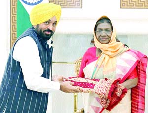 ਨਵੀਂ ਦਿੱਲੀ : ਮੁੱਖ ਮੰਤਰੀ ਭਗਵੰਤ ਸਿੰਘ ਮਾਨ ਨੇ ਸੋਮਵਾਰ ਰਾਸ਼ਟਰਪਤੀ ਦ੍ਰੋਪਦੀ ਮੁਰਮੂ ਨੂੰ ਪਵਿੱਤਰ ਨਗਰ ਸ੍ਰੀ ਅਨੰਦਪੁਰ ਸਾਹਿਬ ਵਿਖੇ ਸ੍ਰੀ ਗੁਰੂ ਤੇਗ਼ ਬਹਾਦਰ ਜੀ ਦੇ 350ਵੇਂ ਸ਼ਹੀਦੀ ਦਿਵਸ ਸਮਾਗਮਾਂ ਵਿੱਚ ਸ਼ਾਮਲ ਹੋਣ ਦਾ ਸੱਦਾ ਦਿੱਤਾ।ਉਨ੍ਹਾ ਕਿਹਾ ਕਿ ਇਨ੍ਹਾਂ ਪਵਿੱਤਰ ਸਮਾਗਮਾਂ ਦਾ ਵਿਸਥਾਰਤ ਰਸਮੀ ਪ੍ਰੋਗਰਾਮ ਰਾਸ਼ਟਰਪਤੀ ਨਾਲ ਸਾਂਝਾ ਕਰਕੇ ਉਨ੍ਹਾਂ ਨੂੰ ਆਪਣੀ ਸਹੂਲਤ ਅਨੁਸਾਰ ਇਨ੍ਹਾਂ ਸਮਾਗਮਾਂ ਵਿੱਚ ਸ਼ਾਮਲ ਹੋਣ ਦੀ ਬੇਨਤੀ ਕੀਤੀ ਗਈ ਹੈ।