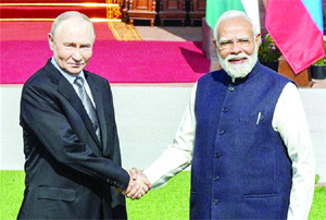 ਨਵੀਂ ਦਿੱਲੀ : ਪ੍ਰਧਾਨ ਮੰਤਰੀ ਨਰਿੰਦਰ ਮੋਦੀ ਤੇ ਰੂਸ ਦੇ ਰਾਸ਼ਟਰਪਤੀ ਵਲਾਦੀਮੀਰ ਪੂਤਿਨ ਵਿਚਾਲੇ 23ਵੀਂ ਭਾਰਤ-ਰੂਸ ਸਿਖਰ ਵਾਰਤਾ ਹੋਈ, ਜਿਸ ਦੌਰਾਨ ਦੋਵਾਂ ਦੇਸ਼ਾਂ ਨੇ ਵੱਖ ਵੱਖ ਖੇਤਰਾਂ ਵਿੱਚ ਕਈ ਅਹਿਮ ਸਮਝੌਤਿਆਂ ’ਤੇ ਦਸਤਖਤ ਕੀਤੇ ਅਤੇ ਅੰਤਰਰਾਸ਼ਟਰੀ ਮੁੱਦਿਆਂ ’ਤੇ ਗੱਲਬਾਤ ਕੀਤੀ। ਦੋਨੋ ਦੇਸ਼ ਸਲਾਨਾ ਦੁਵੱਲਾ ਵਪਾਰ 100 ਅਰਬ ਅਮਰੀਕੀ ਡਾਲਰ ਤੱਕ ਲਿਜਾਣ ਲਈ ਸਹਿਮਤ ਹੋਏ ਹਨ ਜੋ ਇਸ ਸਮੇ 64 ਲੱਖ ਡਾਲਰ ਸਲਾਨਾ ਦੇ ਕਰੀਬ ਹੈ। ਗੱਲਬਾਤ ਦੌਰਾਨ ਪ੍ਰਧਾਨ ਮੰਤਰੀ ਮੋਦੀ ਨੇ ਯੂਕਰੇਨ ਸੰਘਰਸ਼ ਦਾ ਮੁੱਦਾ ਉਠਾਇਆ ਅਤੇ ਜ਼ੋਰ ਦੇ ਕੇ ਕਿਹਾ ਕਿ ਦੁਨੀਆ ਨੂੰ ਸ਼ਾਂਤੀ ਵੱਲ ਪਰਤਣਾ ਚਾਹੀਦਾ ਹੈ। ਉਨ੍ਹਾਂ ਨੇ ਸਪੱਸ਼ਟ ਕੀਤਾ ਕਿ ਭਾਰਤ ਨਿਰਪੱਖ ਨਹੀਂ ਹੈ, ਭਾਰਤ ਸ਼ਾਂਤੀ ਦੇ ਪੱਖ ਵਿੱਚ ਹੈ। ਪ੍ਰਧਾਨ ਮੰਤਰੀ ਨੇ ਕਿਹਾ ਕਿ ਉਨ੍ਹਾਂ ਦੇ ਦੁਵੱਲੇ ਸਬੰਧਾਂ ਨੂੰ ਹੋਰ ਵਧਣਾ ਚਾਹੀਦਾ ਹੈ ਅਤੇ ਨਵੀਆਂ ਉਚਾਈਆਂ ਨੂੰ ਛੂਹਣਾ ਚਾਹੀਦਾ ਹੈ। ਰਾਸ਼ਟਰਪਤੀ ਪੂਤਿਨ ਨੇ ਸ਼ਾਂਤੀ ਦੀਆਂ ਕੋਸ਼ਿਸ਼ਾਂ ਪ੍ਰਤੀ ਭਾਰਤ ਦੇ ਧਿਆਨ ਲਈ ਧੰਨਵਾਦ ਕੀਤਾ ਅਤੇ ਕਿਹਾ ਕਿ ਉਹ ਸੰਘਰਸ਼ ਦੇ ਸ਼ਾਂਤੀਪੂਰਨ ਹੱਲ ਲਈ ਕੰਮ ਕਰ ਰਹੇ ਹਨ। ਸਿਖਰ ਵਾਰਤਾ ਦੌਰਾਨ ਦੋਵਾਂ ਦੇਸ਼ਾਂ ਨੇ ਕਈ ਅਹਿਮ ਖੇਤਰਾਂ ਵਿੱਚ ਸਬੰਧਾਂ ਨੂੰ ਮਜ਼ਬੂਤ ??ਕਰਨ ’ਤੇ ਜ਼ੋਰ ਦਿੱਤਾ। ਰਾਸ਼ਟਰਪਤੀ ਪੂਤਿਨ ਨੇ ਕਿਹਾ ਕਿ ਰੂਸ, ਭਾਰਤ ਅਤੇ ਹੋਰ ਸਮਾਨ ਸੋਚ ਵਾਲੇ ਰਾਸ਼ਟਰ ਇੱਕ ਨਿਆਂਪੂਰਨ ਅਤੇ ਬਹੁ-ਧਰੁਵੀ ਸੰਸਾਰ ਲਈ ਕੰਮ ਕਰ ਰਹੇ ਹਨ। ਉਨ੍ਹਾਂ ਦਾ ਇਹ ਬਿਆਨ ਅਮਰੀਕਾ ਵੱਲੋਂ ਲਗਾਏ ਗਏ ਟੈਕਸ ਅਤੇ ਹੋਰ ਚੁਣੌਤੀਆਂ ਦੇ ਮੱਦੇਨਜ਼ਰ ਆਇਆ ਹੈ। ਪੂਤਿਨ ਨੇ ਇਹ ਵੀ ਦੱਸਿਆ ਕਿ ਰੂਸ ਭਾਰਤ ਨਾਲ ਨਵੇਂ ਅੰਤਰਰਾਸ਼ਟਰੀ ਲੌਜਿਸਟਿਕਸ ਰੂਟ ਬਣਾਉਣ ’ਤੇ ਕੰਮ ਕਰ ਰਿਹਾ ਹੈ। ਪ੍ਰਧਾਨ ਮੰਤਰੀ ਮੋਦੀ ਨੇ ਇਸ ਗੱਲ ’ਤੇ ਜ਼ੋਰ ਦਿੱਤਾ ਕਿ ਭਾਰਤ-ਰੂਸ ਦੀ ਦੋਸਤੀ ਪਿਛਲੇ ਅੱਠ ਦਹਾਕਿਆਂ ਤੋਂ ਧਰੂ-ਤਾਰੇ ਵਾਂਗ ਅਡੋਲ ਰਹੀ ਹੈ ਅਤੇ ਆਪਸੀ ਸਤਿਕਾਰ ਅਤੇ ਡੂੰਘੇ ਵਿਸ਼ਵਾਸ ’ਤੇ ਅਧਾਰਤ ਉਨ੍ਹਾਂ ਦੇ ਸਬੰਧ ਹਮੇਸ਼ਾ ਸਮੇਂ ਦੀ ਪ੍ਰੀਖਿਆ ’ਤੇ ਖਰੇ ਉਤਰੇ ਹਨ। ਊਰਜਾ ਸੁਰੱਖਿਆ ਨੂੰ ਭਾਰਤ-ਰੂਸ ਭਾਈਵਾਲੀ ਦਾ ਇੱਕ ਮਜ਼ਬੂਤ ਸਤੰਭ ਦੱਸਦੇ ਹੋਏ ਮੋਦੀ ਨੇ ਕਿਹਾ ਕਿ ਨਾਗਰਿਕ ਪਰਮਾਣੂ ਊਰਜਾ ਦੇ ਖੇਤਰ ਵਿੱਚ ਦਹਾਕਿਆਂ ਪੁਰਾਣਾ ਸਹਿਯੋਗ ਸਾਡੀਆਂ ਸਾਂਝੀਆਂ ਤਰਜੀਹਾਂ ਲਈ ਮਹੱਤਵਪੂਰਨ ਰਿਹਾ ਹੈ। ਉਨ੍ਹਾਂ ਨੇ ਕਿਹਾ ਕਿ ਇਹ ਜਿੱਤ-ਜਿੱਤ ਵਾਲਾ ਸਹਿਯੋਗ ਜਾਰੀ ਰਹੇਗਾ। ਮੋਦੀ ਨੇ ਨਾਜ਼ੁਕ ਖਣਿਜਾਂ ਦੇ ਖੇਤਰ ਵਿੱਚ ਸਹਿਯੋਗ ਨੂੰ ਵਧਾਉਣ ’ਤੇ ਵੀ ਜ਼ੋਰ ਦਿੱਤਾ, ਕਿਉਂਕਿ ਇਹ ਸਵੱਛ ਊਰਜਾ, ਉੱਚ-ਤਕਨੀਕੀ ਨਿਰਮਾਣ ਅਤੇ ਨਵੇਂ-ਯੁੱਗ ਦੇ ਉਦਯੋਗਾਂ ਵਿੱਚ ਭਾਈਵਾਲੀ ਲਈ ਠੋਸ ਸਮਰਥਨ ਪ੍ਰਦਾਨ ਕਰੇਗਾ। ਪੂਤਿਨ ਨੇ ਕਿਹਾ ਕਿ ਰੂਸ ਭਾਰਤ ਨੂੰ ਬਿਨਾਂ ਰੁਕਾਵਟ ਈਂਧਨ ਸਪਲਾਈ ਪ੍ਰਦਾਨ ਕਰਨ ਲਈ ਤਿਆਰ ਹੈ ਅਤੇ ਉਹ ਊਰਜਾ ਖੇਤਰ ਵਿੱਚ ਸਹਿਯੋਗ ਵਧਾਉਣ ’ਤੇ ਵਿਚਾਰ ਕਰ ਰਹੇ ਹਨ। ਪੁਤਿਨ ਨੇ ਛੋਟੇ ਮਾਡਿਊਲਰ ਪਰਮਾਣੂ ਰਿਐਕਟਰਾਂ ਅਤੇ ਫਲੋਟਿੰਗ ਪਰਮਾਣੂ ਪਾਵਰ ਪਲਾਂਟਾਂ ਦੇ ਨਿਰਮਾਣ ਵਿੱਚ ਸਹਿਯੋਗ ਦੀ ਸੰਭਾਵਨਾ ਬਾਰੇ ਵੀ ਗੱਲ ਕੀਤੀ। ਇਸ ਤੋਂ ਇਲਾਵਾ ਭਾਰਤੀ ਫਰਮਾਂ ਨੇ ਰੂਸ ਦੀ ਯੂਰਲਕੇਮ ਨਾਲ ਰੂਸ ਵਿੱਚ ਯੂਰੀਆ ਪਲਾਂਟ ਸਥਾਪਤ ਕਰਨ ਲਈ ਇੱਕ ਸਮਝੌਤੇ ’ਤੇ ਹਸਤਾਖਰ ਕੀਤੇ ਹਨ। ਮੋਦੀ ਨੇ ਅਤਿਵਾਦ ਦੇ ਮੁੱਦੇ ਨੂੰ ਉਠਾਉਂਦੇ ਹੋਏ ਕਿਹਾ ਕਿ ਚਾਹੇ ਉਹ ਪਹਿਲਗਾਮ ਅਤਿਵਾਦੀ ਹਮਲਾ ਹੋਵੇ ਜਾਂ ਮਾਸਕੋ ਦੇ ਕ੍ਰੋਕਸ ਸਿਟੀ ਹਾਲ ’ਤੇ ਕਾਇਰਾਨਾ ਹਮਲਾ, ਅਜਿਹੀਆਂ ਸਾਰੀਆਂ ਘਟਨਾਵਾਂ ਦੀ ਜ
