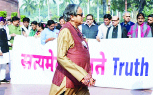 ਨਵੀਂ ਦਿੱਲੀ : ਕਾਂਗਰਸ ਦੇ ਸੰਸਦ ਮੈਂਬਰਾਂ ਨੇ ਬੁੱਧਵਾਰ ਸੰਸਦ ਭਵਨ ਕੰਪਲੈਕਸ ਵਿੱਚ ਕੇਂਦਰ ਸਰਕਾਰ ਵਿਰੁੱਧ ਪ੍ਰਦਰਸ਼ਨ ਕੀਤਾ। ਇਹ ਰੋਸ ਪ੍ਰਦਰਸ਼ਨ ਨੈਸ਼ਨਲ ਹੇਰਾਲਡ ਕੇਸ ਵਿੱਚ ਸੋਨੀਆ ਗਾਂਧੀ ਅਤੇ ਰਾਹੁਲ ਗਾਂਧੀ ਨੂੰ ਅਦਾਲਤ ਤੋਂ ਮਿਲੀ ਰਾਹਤ ਤੋਂ ਬਾਅਦ ਈ ਡੀ ਦੀ ਦੁਰਵਰਤੋਂ ਨੂੰ ਲੈ ਕੇ ਕੀਤਾ ਗਿਆ। ਪਾਰਟੀ ਦੇ ਸੰਸਦ ਮੈਂਬਰਾਂ ਨੇ ਜ਼ੋਰ ਦੇ ਕੇ ਕਿਹਾ ਕਿ ਸੱਚ ਦੀ ਜਿੱਤ ਹੋਈ ਹੈ, ਕਿਉਂਕਿ ਦਿੱਲੀ ਦੀ ਇੱਕ ਅਦਾਲਤ ਨੇ ਇਸ ਮਾਮਲੇ ਵਿੱਚ ਦੋਵਾਂ ਪਾਰਟੀ ਆਗੂਆਂ ਵਿਰੁੱਧ ਜਾਂਚ ਏਜੰਸੀ ਦੇ ਮਨੀ ਲਾਂਡਰਿੰਗ ਦੇ ਦੋਸ਼ਾਂ ਦਾ ਨੋਟਿਸ ਲੈਣ ਤੋਂ ਇਨਕਾਰ ਕਰ ਦਿੱਤਾ ਹੈ। ਸੰਸਦ ਦੇ ਮਕਰ ਦੁਆਰ ਦੀਆਂ ਪੌੜੀਆਂ ਦੇ ਸਾਹਮਣੇ ਸੰਸਦ ਮੈਂਬਰਾਂ ਨੇ ‘ਸੱਤਯਮੇਵ ਜੈਯਤੇ’ ਦੇ ਬੈਨਰ ਫੜ ਕੇ ਸਰਕਾਰ ਵਿਰੁੱਧ ਨਾਅਰੇਬਾਜ਼ੀ ਕੀਤੀ ਅਤੇ ਨਰਿੰਦਰ ਮੋਦੀ ਸਰਕਾਰ ਤੋਂ ਮੁਆਫੀ ਦੀ ਮੰਗ ਕੀਤੀ। ਇਸ ਪ੍ਰਦਰਸ਼ਨ ਵਿੱਚ ਕਾਂਗਰਸ ਦੇ ਜਨਰਲ ਸਕੱਤਰ ਕੇ ਸੀ ਵੇਣੂਗੋਪਾਲ, ਮੁਕੁਲ ਵਾਸਨਿਕ, ਸ਼ਸ਼ੀ ਥਰੂਰ, ਤਾਰਿਕ ਅਨਵਰ, ਕੁਮਾਰੀ ਸ਼ੈਲਜਾ, ਕੇ ਸੁਰੇਸ਼ ਅਤੇ ਮਾਨਿਕਮ ਟੈਗੋਰ ਸਮੇਤ ਕਈ ਹੋਰ ਆਗੂ ਸ਼ਾਮਲ ਹੋਏ। ਇਸ ਤੋਂ ਪਹਿਲਾਂ ਕਾਂਗਰਸ ਨੇ ਅਦਾਲਤੀ ਰਾਹਤ ਤੋਂ ਬਾਅਦ ਪ੍ਰਧਾਨ ਮੰਤਰੀ ਨਰਿੰਦਰ ਮੋਦੀ ਅਤੇ ਕੇਂਦਰੀ ਗ੍ਰਹਿ ਮੰਤਰੀ ਅਮਿਤ ਸ਼ਾਹ ਦੇ ਅਸਤੀਫੇ ਦੀ ਮੰਗ ਵੀ ਕੀਤੀ। ਪਾਰਟੀ ਪ੍ਰਧਾਨ ਮਲਿਕਾਰਜੁਨ ਖੜਗੇ ਨੇ ਇੱਕ ਪ੍ਰੈੱਸ ਕਾਨਫਰੰਸ ਦੌਰਾਨ ਕਿਹਾ ਕਿ ਉਹ ਸੰਸਦ ਦੇ ਅੰਦਰ ਅਤੇ ਬਾਹਰ ਲੜਾਈ ਜਾਰੀ ਰੱਖਣਗੇ। ਜ਼ਿਕਰਯੋਗ ਹੈ ਕਿ ਮੰਗਲਵਾਰ ਦਿੱਲੀ ਦੀ ਅਦਾਲਤ ਨੇ ਸੋਨੀਆ ਗਾਂਧੀ, ਰਾਹੁਲ ਗਾਂਧੀ ਅਤੇ ਪੰਜ ਹੋਰਾਂ ਨੂੰ ਰਾਹਤ ਦਿੰਦਿਆਂ ਈ ਡੀ ਦੇ ਮਨੀ ਲਾਂਡਰਿੰਗ ਦੇ ਦੋਸ਼ਾਂ ’ਤੇ ਵਿਚਾਰ ਕਰਨ ਤੋਂ ਮਨ੍ਹਾਂ ਕਰ ਦਿੱਤਾ ਸੀ, ਕਿਉਂਕਿ ਏਜੰਸੀ ਦੀ ਜਾਂਚ ਕਿਸੇ ਐੱਫ ਆਈ ਆਰ ਦੀ ਬਜਾਏ ਇੱਕ ਨਿੱਜੀ ਸ਼ਿਕਾਇਤ ’ਤੇ ਅਧਾਰਤ ਸੀ।