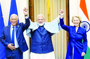 ਮੋਦੀ ਨੇ ਭਾਰਤ ਤੇ ਯੂਰਪੀ ਯੂਨੀਅਨ ਵਿਚਾਲੇ ਵਪਾਰ ਸਮਝੌਤੇ ਨੂੰ ਇਤਿਹਾਸਕ ਮੀਲ ਪੱਥਰ ਅਤੇ ਦੁਨੀਆ ਦੀਆਂ ਦੋ ਸਭ ਤੋਂ ਵੱਡੀਆਂ ਅਰਥ ਵਿਵਸਥਾਵਾਂ ਵਿਚਕਾਰ ਸਹਿਯੋਗ ਦਾ ਇੱਕ ਸ਼ਕਤੀਸ਼ਾਲੀ ਪ੍ਰਤੀਕ ਕਰਾਰ ਦਿੱਤਾ ਹੈ। ਪ੍ਰਧਾਨ ਮੰਤਰੀ ਨੇ ਇੰਡੀਆ ਐਨਰਜੀ ਵੀਕ ਦੇ ਚੌਥੇ ਐਡੀਸ਼ਨ ਦਾ ਵਰਚੁਅਲੀ ਉਦਘਾਟਨ ਕਰਦਿਆਂ ਕਿਹਾ ਕਿ ਇਹ ਇਤਿਹਾਸਕ ਸਮਝੌਤਾ ਭਾਰਤ ਦੇ 140 ਕਰੋੜ ਨਾਗਰਿਕਾਂ ਦੇ ਨਾਲ-ਨਾਲ ਯੂਰਪ ਭਰ ਦੇ ਲੱਖਾਂ ਲੋਕਾਂ ਲਈ ਵਿਸ਼ਾਲ ਮੌਕੇ ਖੋਲ੍ਹਣ ਦੀ ਉਮੀਦ ਹੈ। ਮੋਦੀ ਨੇ ਸਮਝੌਤੇ ਨੂੰ ਭਾਰਤ ਵੱਲੋਂ ਹੁਣ ਤੱਕ ਕੀਤੇ ਸਮਝੌਤਿਆਂ ਵਿੱਚੋਂ ‘ਸਭ ਸੌਦਿਆਂ ਦੀ ਮਾਂ’ ਕਰਾਰ ਦਿੱਤਾ ਹੈ।
