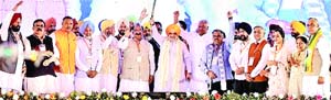 ਮੋਗਾ/ਅਜੀਤਵਾਲ (ਇਕਬਾਲ ਸਿੰਘ ਖਹਿਰਾ, ਨਛ¾ਤਰ ਸੰਧੂ)-ਕੇਂਦਰੀ ਗ੍ਰਹਿ ਮੰਤਰੀ ਅਮਿਤ ਸ਼ਾਹ ਨੇ ਸ਼ਨੀਵਾਰ ਕਿਲੀ ਚਹਿਲਾਂ ਮੋਗਾ ਦੀ ਧਰਤੀ ਤੋਂ ਪੰਜਾਬ ਵਿੱਚ 2027 ਦੀਆਂ ਵਿਧਾਨ ਸਭਾ ਚੋਣਾਂ ਲਈ ਭਾਜਪਾ ਦੀ ਮੁਹਿੰਮ ਦਾ ਰਸਮੀ ਆਗਾਜ਼ ਕਰ ਦਿੱਤਾ| ਪਾਰਟੀ ਦੀ ‘ਬਦਲਾਅ ਰੈਲੀ’ ਨੂੰ ਸੰਬੋਧਨ ਕਰਦਿਆਂ ਨਾਨਕਸ਼ਾਹੀ ਨਵੇਂ ਸਾਲ ਦੀਆਂ ਮੁਬਾਰਕਾਂ ਦਿੰਦਿਆਂ ਸ਼ਾਹ ਨੇ ਸਪੱਸ਼ਟ ਕੀਤਾ ਕਿ ਹੁਣ ਭਾਜਪਾ ਪੰਜਾਬ ਵਿੱਚ ‘ਛੋਟੇ ਭਰਾ’ (ਜੂਨੀਅਰ ਸਹਿਯੋਗੀ) ਵਜੋਂ ਨਹੀਂ, ਸਗੋਂ ਆਪਣੇ ਦਮ ’ਤੇ ਸਰਕਾਰ ਬਣਾਉਣ ਦੇ ਮਕਸਦ ਨਾਲ ਮੈਦਾਨ ਵਿੱਚ ਉਤਰੇਗੀ| ਉਨ੍ਹਾ ਕਿਹਾ ਕਿ ਜਿਸ ਤਰ੍ਹਾਂ ਕੇਂਦਰ ਨੇ ਦੇਸ਼ ਵਿੱਚੋਂ ਨਕਸਲਵਾਦ ਨੂੰ ਨੱਥ ਪਾਈ ਹੈ, ਉਸੇ ਤਰ੍ਹਾਂ ਪੰਜਾਬ ਵਿੱਚੋਂ ਨਸ਼ਿਆਂ ਦੇ ਕੋਹੜ ਨੂੰ ਜੜ੍ਹੋਂ ਪੁੱਟਿਆ ਜਾਵੇਗਾ| ਕੇਂਦਰੀ ਮੰਤਰੀ ਨੇ ਪੰਜਾਬ ਦੀ ਮੌਜੂਦਾ ਸਥਿਤੀ ’ਤੇ ਚਿੰਤਾ ਪ੍ਰਗਟ ਕਰਦਿਆਂ ‘ਤਿੰਨ ਵੱਡੇ ਖ਼ਤਰਿਆਂ’-ਗੈਂਗਸਟਰ ਕਲਚਰ, ਜ਼ਬਰਦਸਤੀ ਧਰਮ ਪਰਿਵਰਤਨ ਅਤੇ ਭ੍ਰਿਸ਼ਟਾਚਾਰ ਵਿਰੁੱਧ ਸਖ਼ਤ ਕਾਰਵਾਈ ਕਰਨ ਦਾ ਅਹਿਦ ਲਿਆ| ਉਨ੍ਹਾ ਭਰੋਸਾ ਦਿੱਤਾ ਕਿ ਜੇਕਰ ਪੰਜਾਬ ਵਿੱਚ ਭਾਜਪਾ ਦੀ ਸਰਕਾਰ ਬਣਦੀ ਹੈ ਤਾਂ ਇਨ੍ਹਾਂ ਬੁਰਾਈਆਂ ਨੂੰ ਸੂਬੇ ਵਿੱਚੋਂ ਪੂਰੀ ਤਰ੍ਹਾਂ ਮਲੀਆਮੇਟ ਕਰ ਦਿੱਤਾ ਜਾਵੇਗਾ|