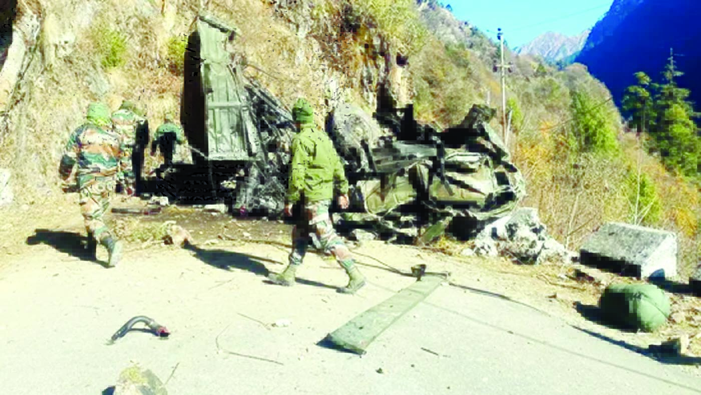 ਗੰਗਟੋਕ : ਉੱਤਰੀ ਸਿੱਕਮ ‘ਚ ਭਾਰਤ-ਚੀਨ ਸਰਹੱਦ ਦੇ ਨੇੜੇ ਫੌਜੀ ਟਰੱਕ ਦੇ ਖੱਡ ‘ਚ ਡਿੱਗਣ ਕਾਰਨ 16 ਫੌਜੀਆਂ ਦੀ ਮੌਤ ਹੋ ਗਈ ਅਤੇ 4 ਜ਼ਖਮੀ ਹੋ ਗਏ | ਤਿੰਨ ਟਰੱਕਾਂ ਦਾ ਕਾਫਲਾ ਜਾ ਰਿਹਾ ਸੀ ਕਿ ਇਸ ਦੌਰਾਨ ਇਕ ਟਰੱਕ ਖੱਡ ‘ਚ ਡਿੱਗ ਗਿਆ | ਹਾਦਸਾ ਸੂਬੇ ਦੀ ਰਾਜਧਾਨੀ ਗੰਗਟੋਕ ਤੋਂ 130 ਕਿਲੋਮੀਟਰ ਦੀ ਦੂਰੀ ‘ਤੇ ਹੋਇਆ |