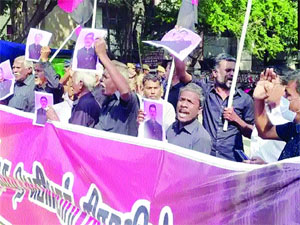 ਚੇਨਈ : ਤਾਮਿਲਨਾਡੂ ਵਿਚ ਸਰਕਾਰ ਤੇ ਰਾਜਪਾਲ ਆਰ ਐੱਨ ਰਵੀ ਵਿਚਾਲੇ ਟਕਰਾਅ ਹੋਰ ਵਧ ਗਿਆ ਹੈ | ਰਾਜਪਾਲ ਵੱਲੋਂ ਅਸੰਬਲੀ ‘ਚ ਰਾਜ ਦਾ ਨਾਂਅ ਤਮਿੜਗਮ ਕਰਨ ਦੀ ਗੱਲ ਕਹਿਣ ਤੋਂ ਬਾਅਦ ਡੀ ਐੱਮ ਕੇ ਵਰਕਰਾਂ ਨੇ ਮੰਗਲਵਾਰ ਚੇਨਈ ਵਿਚ ‘ਗੈੱਟ ਆਊਟ ਰਵੀ’ ਦੇ ਪੋਸਟਰ ਲਾ ਦਿੱਤੇ ਤੇ ਰਾਜਪਾਲ ਖਿਲਾਫ ਨਾਅਰੇਬਾਜ਼ੀ ਕੀਤੀ |