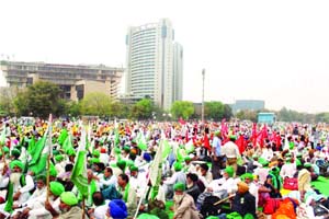 ਦਿੱਲੀ : ਸੰਯੁਕਤ ਕਿਸਾਨ ਮੋਰਚੇ ਦੇ ਸੱਦੇ ਉੱਤੇ ਸੋਮਵਾਰ ਇੱਥੇ ਰਾਮ ਲੀਲ੍ਹਾ ਮੈਦਾਨ ਵਿੱਚ ਹਜ਼ਾਰਾਂ ਕਿਸਾਨ ਇਕੱਠੇ ਹੋਏ | ਪੰਜਾਬ- ਹਰਿਆਣਾ ਤੋਂ ਇਲਾਵਾ ਦੇਸ਼ ਦੇ ਵੱਖ-ਵੱਖ ਸੂਬਿਆਂ ਤੋਂ ਕਿਸਾਨਾਂ ਨੇ ਪ੍ਰਦਰਸ਼ਨ ਵਿੱਚ ਹਿੱਸਾ ਲਿਆ, ਜਿਸ ਵਿੱਚ ਔਰਤਾਂ ਦੀ ਸ਼ਮੂਲੀਅਤ ਵੀ ਗਿਣਨਯੋਗ ਸੀ | ਇਸ ਮੌਕੇ ਸੰਬੋਧਨ ਕਰਦਿਆਂ ਆਲ ਇੰਡੀਆ ਕਿਸਾਨ ਸਭਾ ਦੇ ਪ੍ਰਧਾਨ ਸਾਥੀ ਵੈਂਕਈਆ, ਜੋਗਿੰਦਰ ਸਿੰਘ ਉਗਰਾਹਾਂ, ਰਾਕੇਸ਼ ਟਿਕੈਤ, ਹਨਨ ਮੁੱਲਾ, ਨਿਰਭੈ ਸਿੰਘ ਢੁੱਡੀਕੇ, ਆਸ਼ੀਸ਼ ਮਿੱਤਲ, ਡਾਕਟਰ ਦਰਸ਼ਨਪਾਲ, ਸਤਿਆਪਾਲ, ਸਰੀਨ ਕੈਂਥ, ਤਜਿੰਦਰ ਸਿੰਘ ਵਿਰਕ, ਸਤਨਾਮ ਸਿੰਘ ਅਜਨਾਲਾ, ਬੂਟਾ ਸਿੰਘ ਬੁਰਜਗਿੱਲ, ਮਨਜੀਤ ਸਿੰਘ ਧਨੇਰ, ਹਰਮੀਤ ਸਿੰਘ ਕਾਦੀਆਂ, ਹਰਿੰਦਰ ਸਿੰਘ ਲੱਖੋਵਾਲ, ਸਤਨਾਮ ਸਿੰਘ ਬਹਿਰੂ, ਮਨਜੀਤ ਰਾਏ ਨੇ ਕਿਹਾ ਕਿ ਕਿਸਾਨ ਅੰਦੋਲਨ ਦੀ ਇਤਿਹਾਸਕ ਜਿੱਤ ਨੂੰ ਭਾਜਪਾ ਸਰਕਾਰ ਧੁੰਦਲਾ ਕਰਨਾ ਚਾਹੁੰਦੀ ਹੈ | ਇਸ ਅੰਦੋਲਨ ਨੇ ਦੁਨੀਆ ਦੇ ਲੋਕਾਂ ਨੂੰ ਰਾਹ ਦਿਖਾਇਆ ਹੈ ਕਿ ਜੇਕਰ ਸਭ ਧਰਮਾਂ, ਖਿੱਤਿਆਂ ਦੇ ਲੋਕ ਇੱਕਜੁੱਟ ਹੋ ਜਾਣ ਤਾਂ ਉਹ ਕਾਰਪੋਰੇਟ ਜਗਤ ਨੂੰ ਵੀ ਮੂਧਾ ਕਰ ਸਕਦੇ ਹਨ | ਕਾਰਪੋਰੇਟ ਜਗਤ ਨੇ ਖੇਤੀ ਅਤੇ ਫਸਲਾਂ ਹੜੱਪਣ ਲਈ ਕਾਲੇ ਕਾਨੂੰਨ ਲਿਆਂਦੇ ਸਨ, ਜਿਸ ਦੇ ਵਿਰੁੱਧ ਉਹ ਲੋਕ ਇੱਕਮੁੱਠ ਹੋ ਗਏ, ਜਿਹਨਾਂ ਨੂੰ ਭਾਜਪਾ ਸਰਕਾਰ ਹਿੰਦੂ, ਸਿੱਖ, ਮੁਸਲਮਾਨ ਦੇ ਨਾਂਅ ਉੱਤੇ ਫਿਰਕੂ ਵੰਡ ਪਾ ਕੇ ਰੱਖਦੀ ਹੈ |